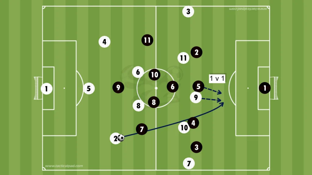 Access is rarely accidental. Teams manipulate width, tempo, and player positioning to pull defensive blocks apart. Overloads wide stretch full-backs, while central runners attack vacated channels. This layered movement determines whether possession progresses into danger or stalls outside compact shapes.